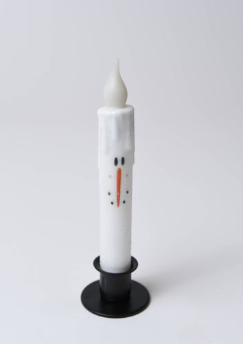 Snowman LED Timer Taper Candle: White with Diamond Dust