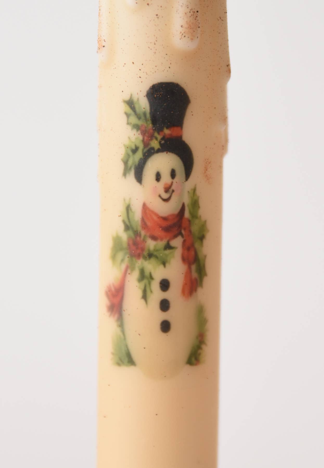 Vintage Snowman LED Timer Taper Candle: Fully Dusted