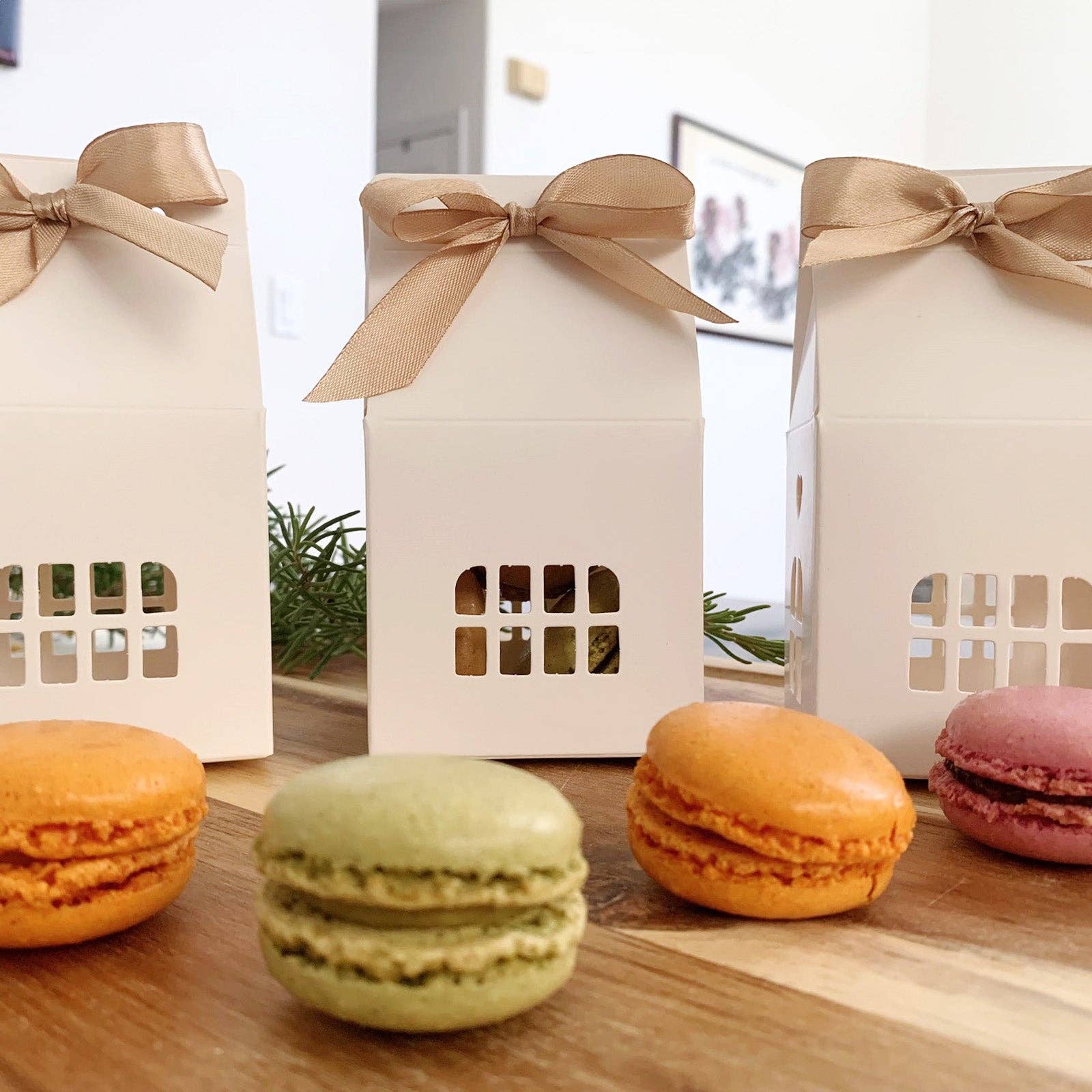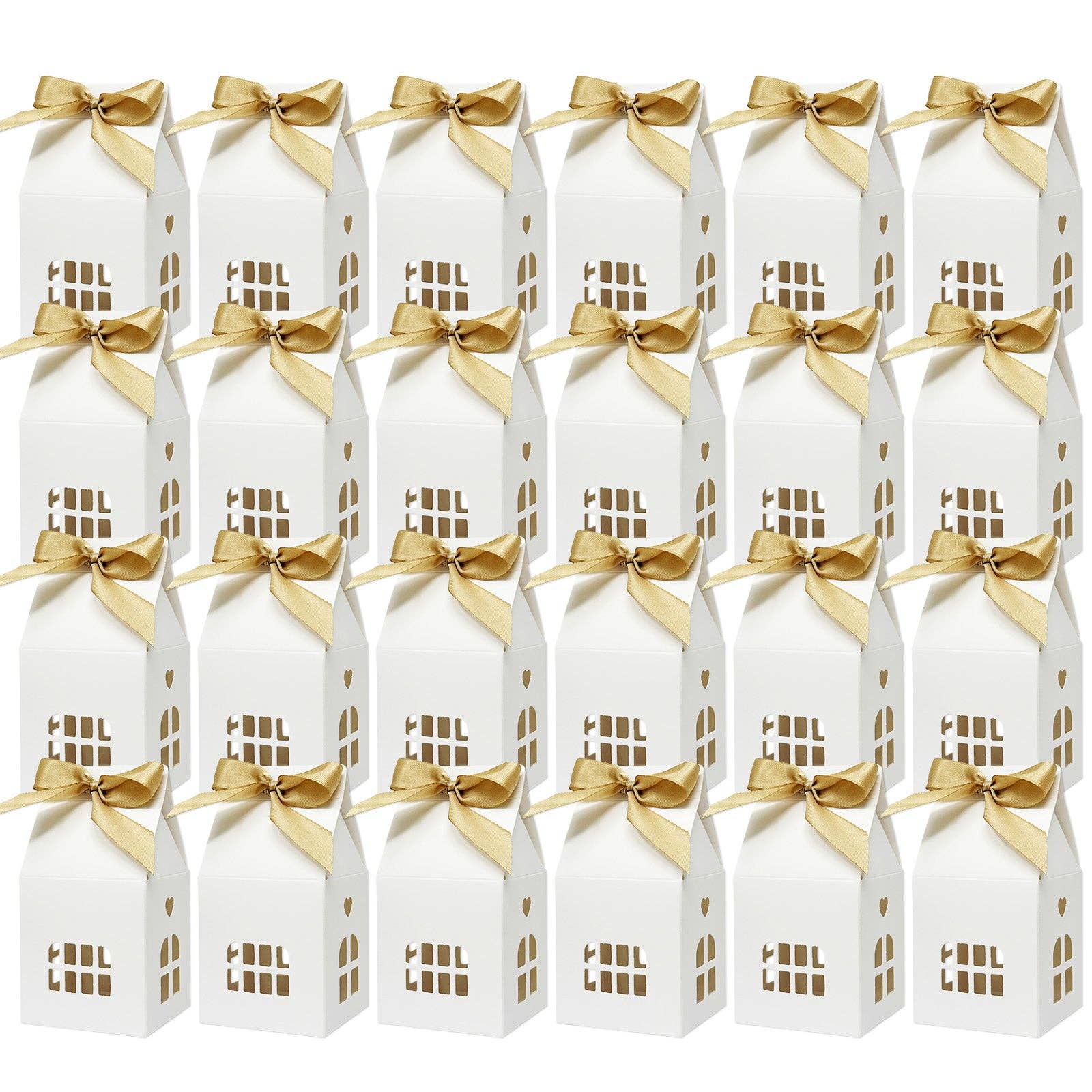 These charming house-shaped gift boxes are perfect for weddings, housewarming parties, bridal showers, baby showers and holiday celebrations. The intricate cutout windows transform these boxes into miniature homes, making them an enchanting choice for party favors, table decorations, or even as part of a Christmas Advent Calendar Countdown. Simply fill the boxes with chocolates, candies, cookies, or small gifts, and have your friends and family open one box a day until Christmas. The boxes are easy to assemble—simply fold along the lines and secure with the ribbon on top. No need for glue or tape. INCLUDES: Set comes with 24 house boxes with ribbons. USE: Can be used as gift boxes, party favors, table decorations, or as part of your Christmas Advent Calendar Countdown. DESIGN: Lovely cutout windows make the boxes look like miniature houses. These boxes are also perfect for weddings, bridal showers and housewarming. SIZE: 2.75L x 2W x 5H inches. MATERIAL: Cardboard, Satin Ribbon.