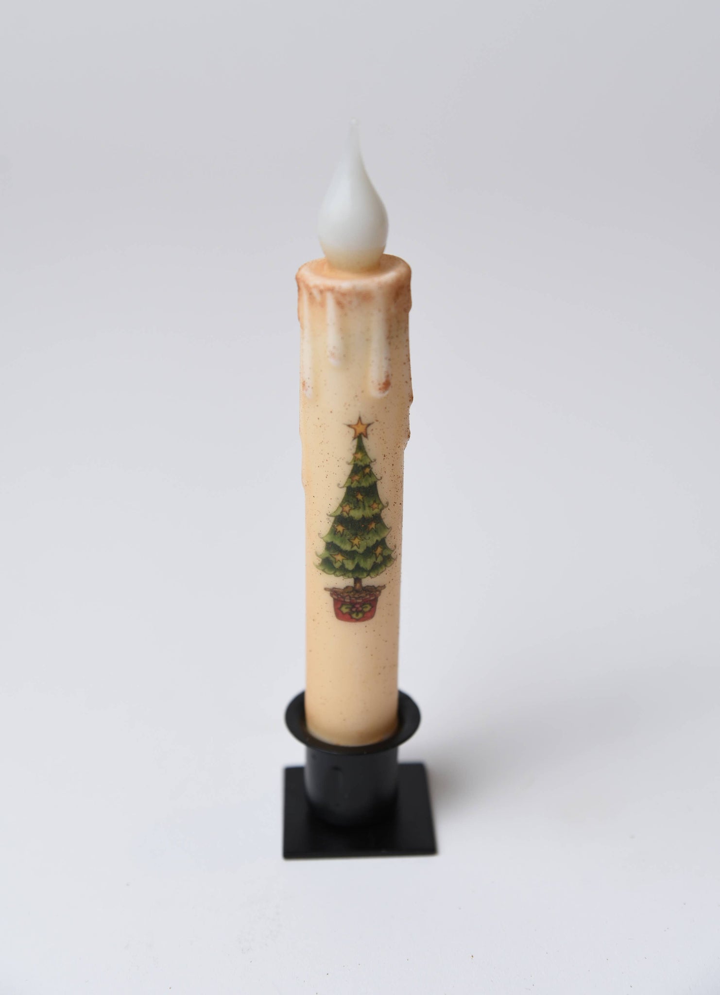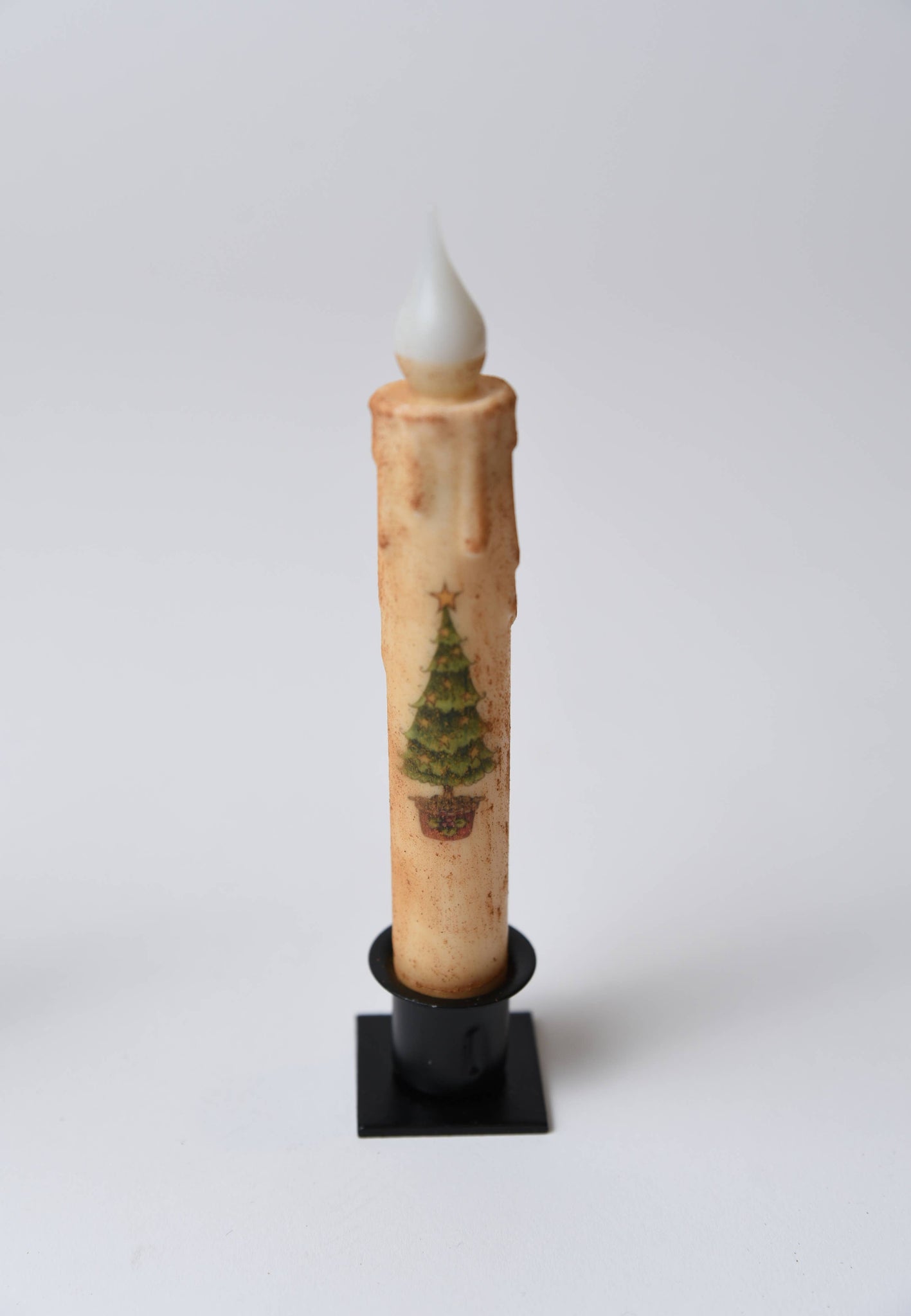Grinch Tree LED Timer Taper Candle: Cream Fully Dusted